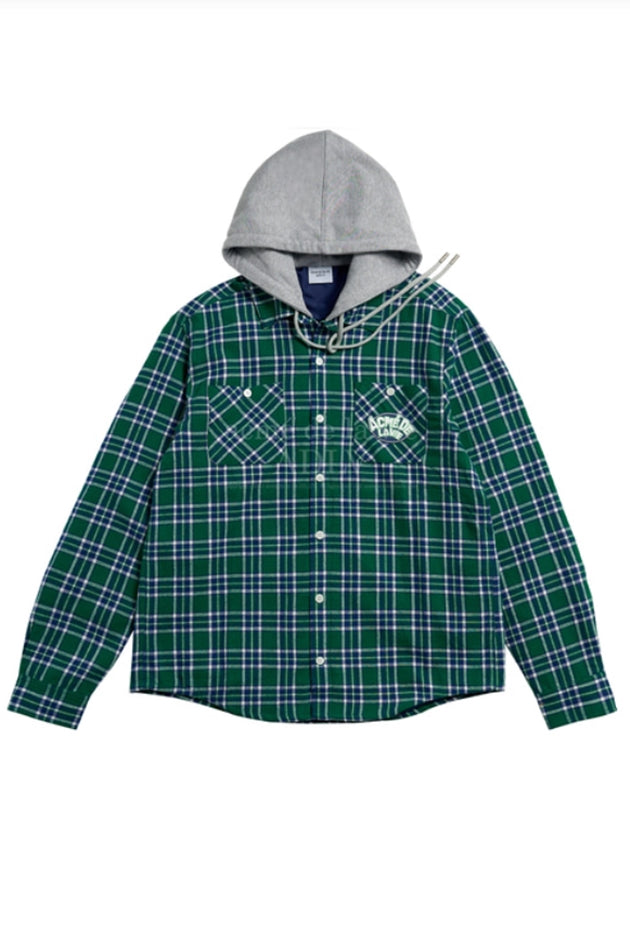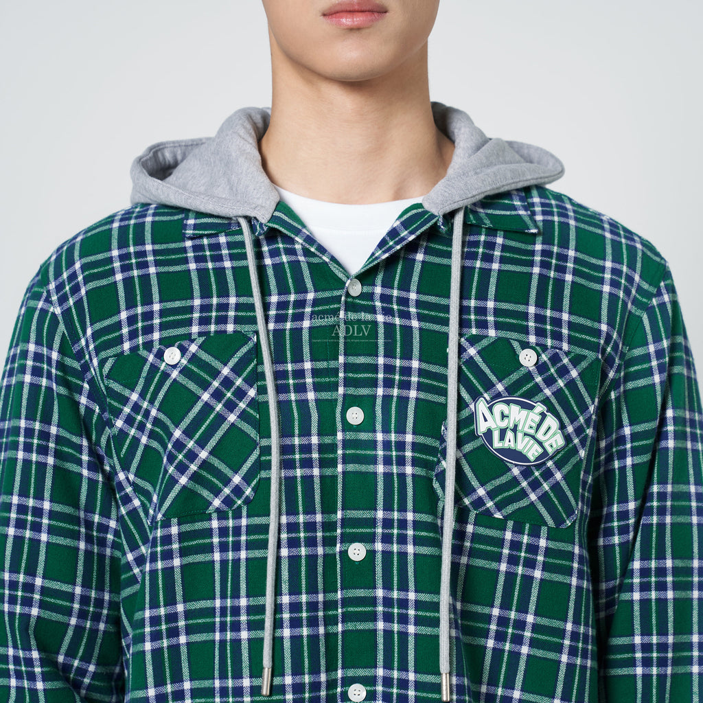 アクメドラビ(acme' de la vie) SILICON EMBLEM CHECKSHIRT HOODIE GREEN