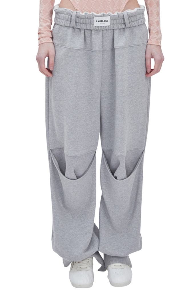 レイブレス(LABELESS) GREY KNEE DARG SWEAT PANTS
