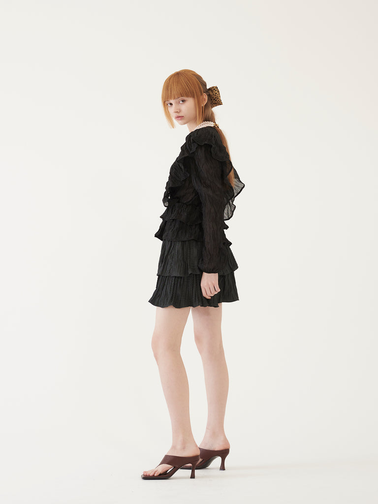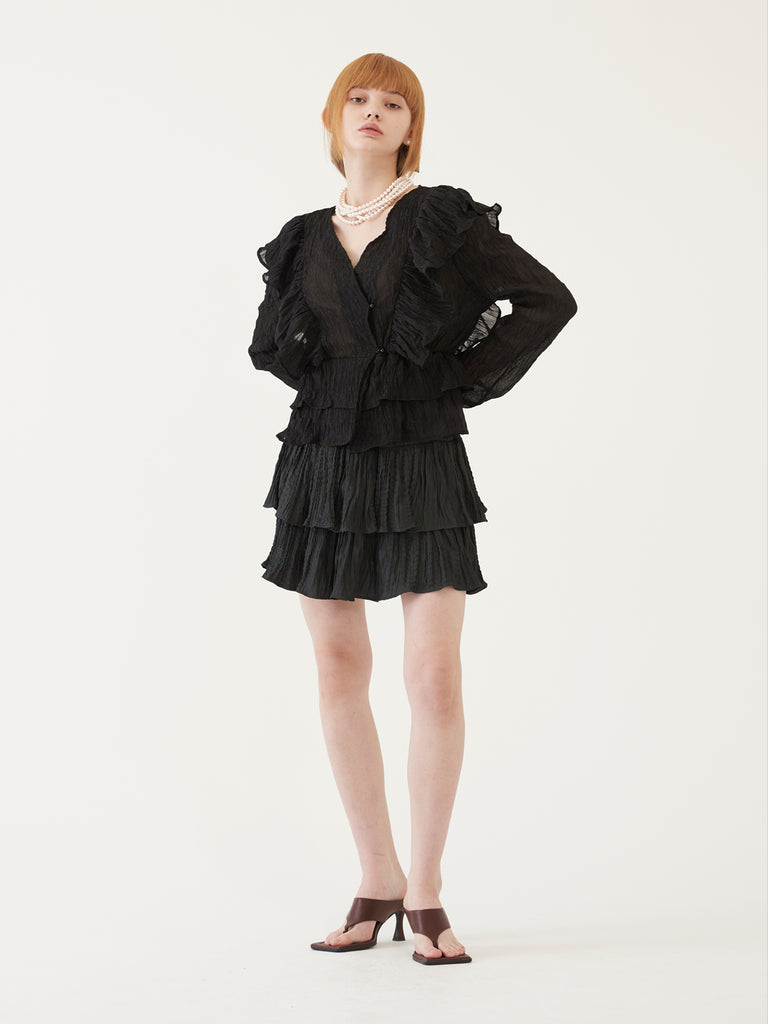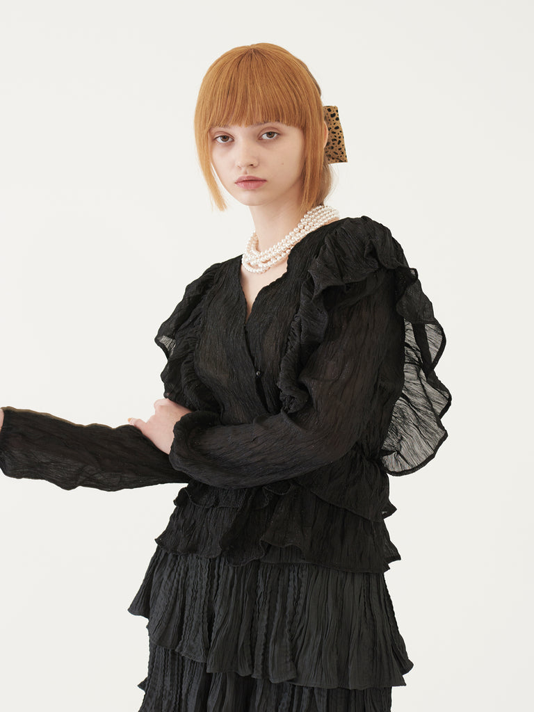 TMO BY 13MONTH(ティーエムオーバイサーティンマンス)RUFFLED BLOUSE (BLACK)