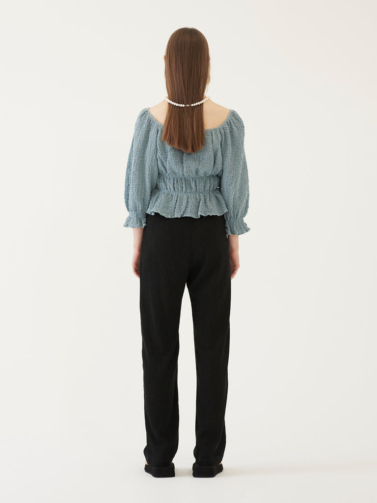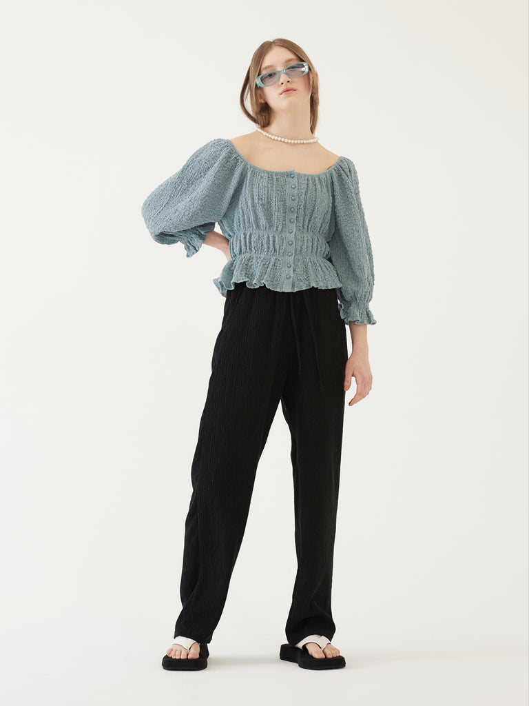 TMO BY 13MONTH(ティーエムオーバイサーティンマンス)SHIRRING SQUARE BLOUSE (BLUE)