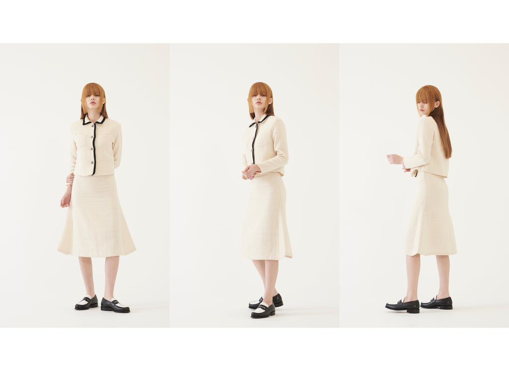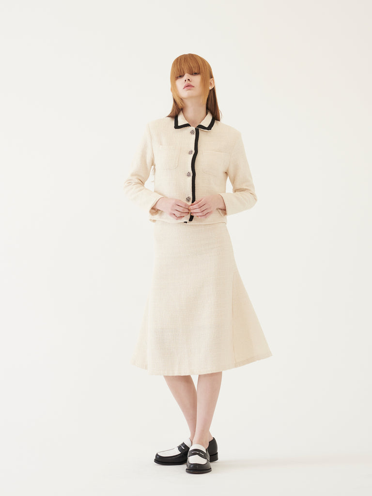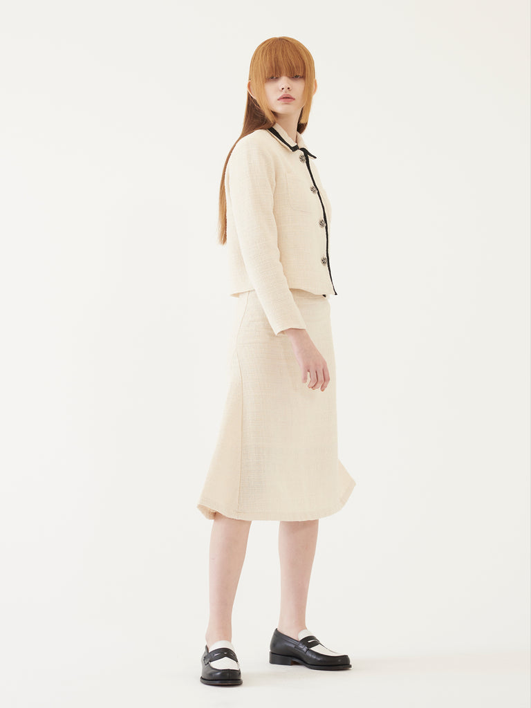 TMO BY 13MONTH(ティーエムオーバイサーティンマンス)TWEED MIDI SKIRT (IVORY)