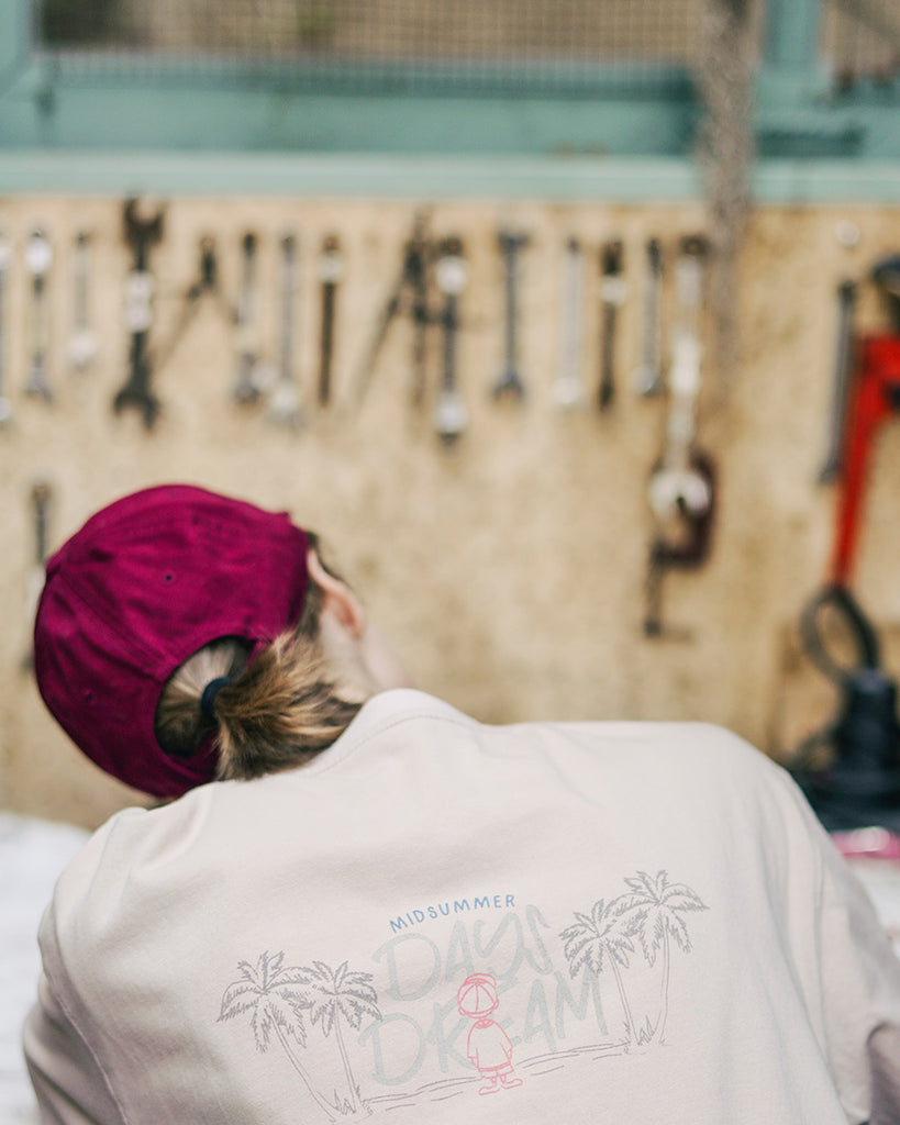 ダブルユーブイプロジェクト(WV PROJECT) Palm tree short-sleeved T-shirt gray beige JIST7503