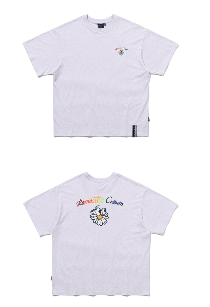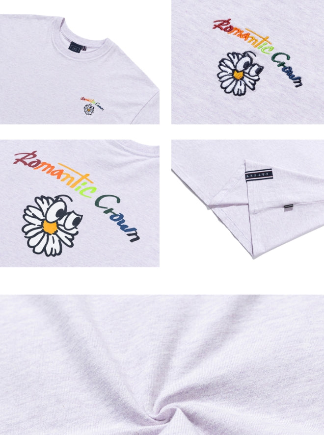 ロマンティッククラウン(ROMANTIC CROWN) FLOWER FACE LOGO TEE_MELANGE LIGHT PURPLE