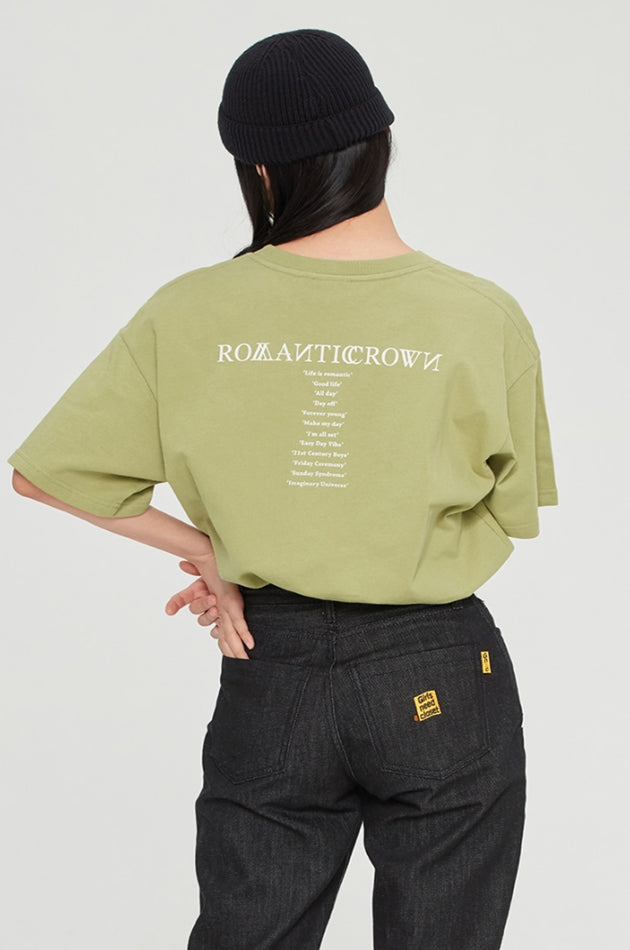 ロマンティッククラウン(ROMANTIC CROWN) SLOGAN LIST LOGO TEE_LIGHT KHAKI