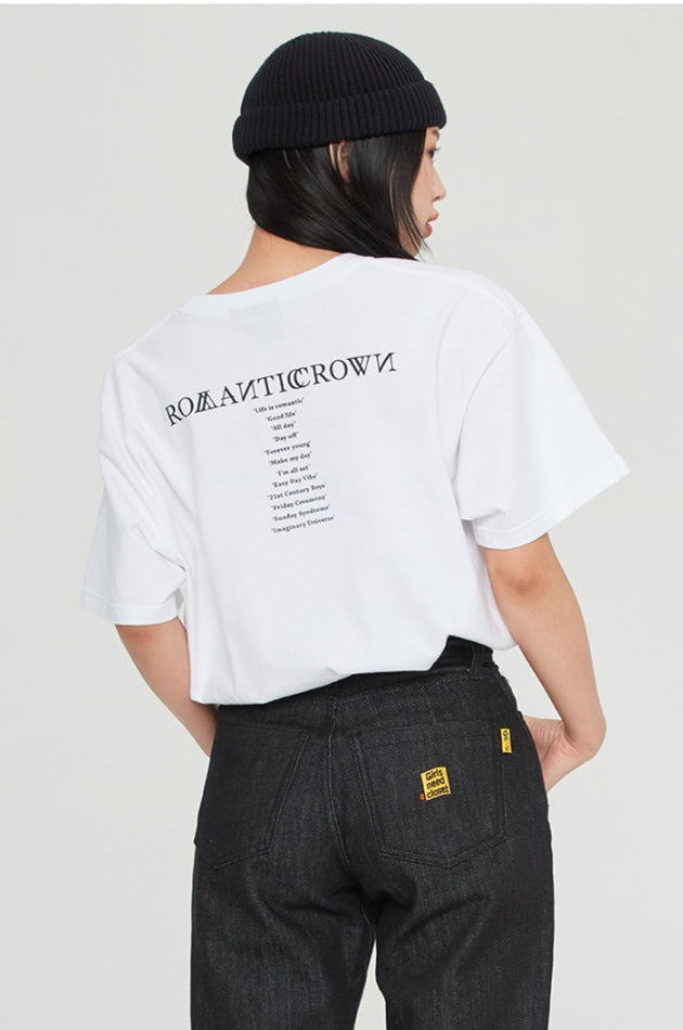 ロマンティッククラウン(ROMANTIC CROWN) SLOGAN LIST LOGO TEE_WHITE
