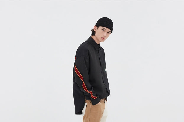 オールドスクールテイストのカラーマッチをストライプに施した、ストリート感あふれるシャツ。