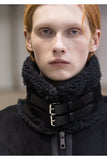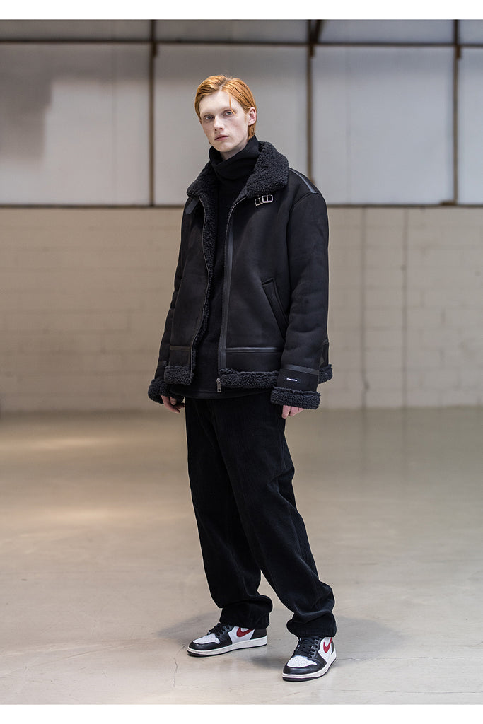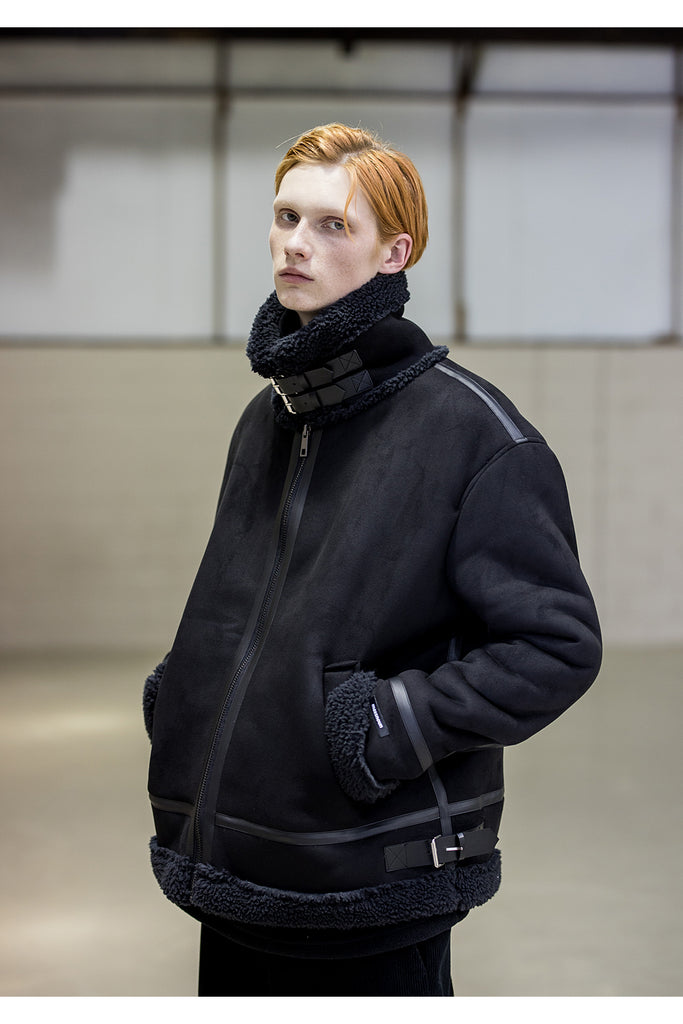 メスノウン(MASSNOUN)LEATHER STRAP OVERSIZED SUEDED MOUTON JACKET MFNJK004-BK