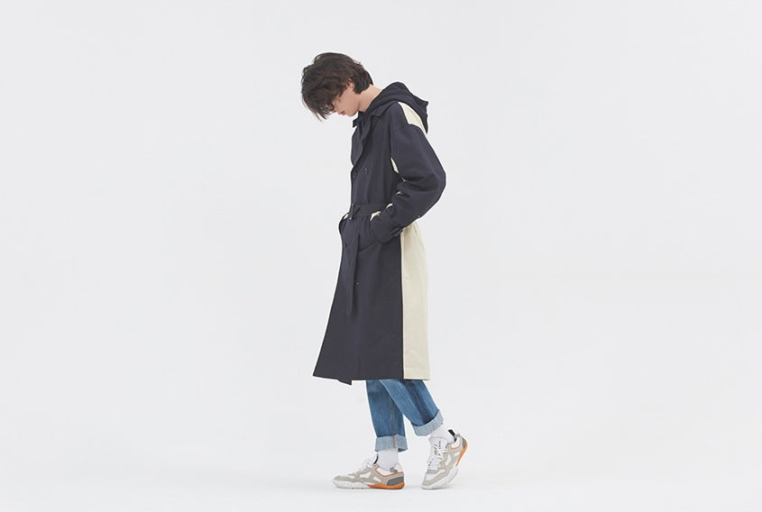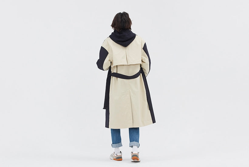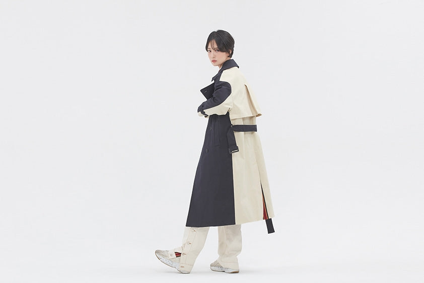 ナチュラルなラインを演出するオーバーサイズシルエットのトレンチコート。