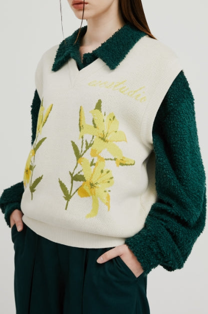 イーエスシースタジオ(ESC STUDIO) flower knit vest(beige)