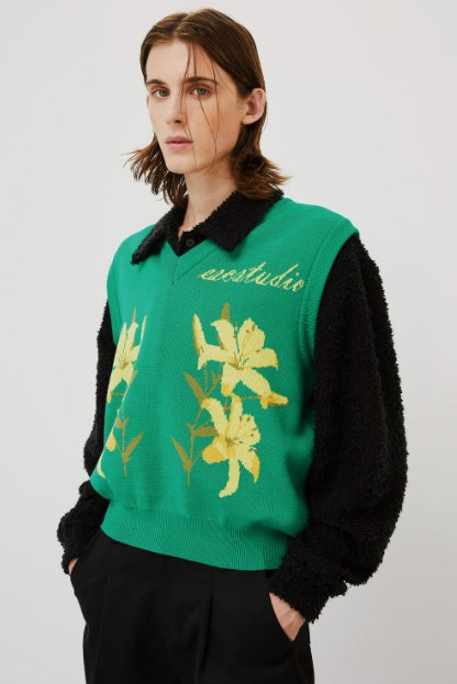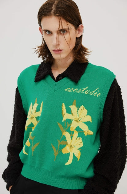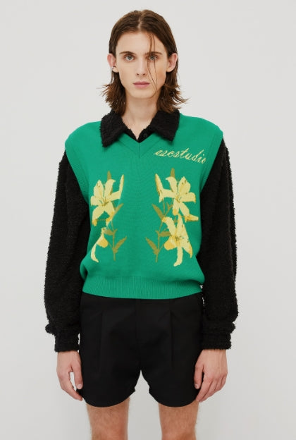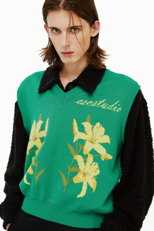 イーエスシースタジオ(ESC STUDIO) flower knit vest(green)