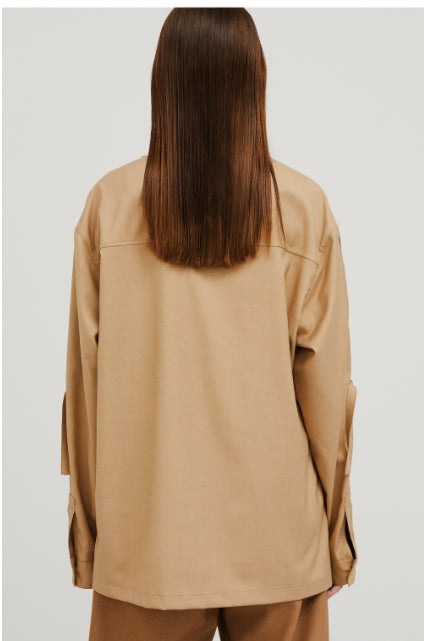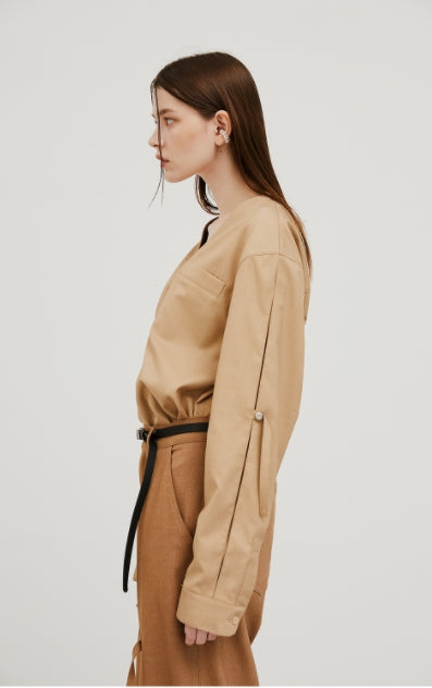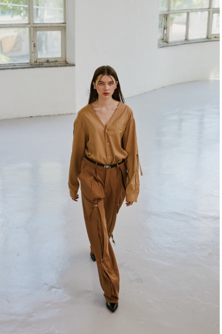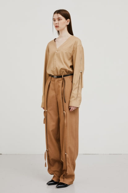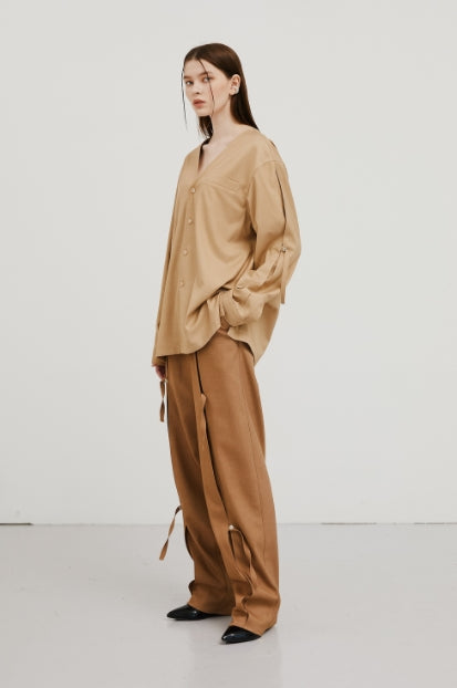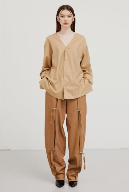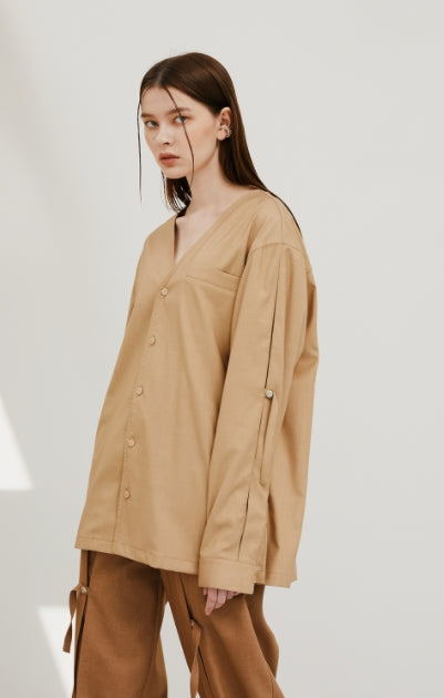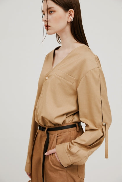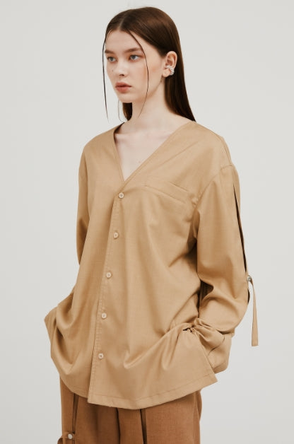イーエスシースタジオ(ESC STUDIO) slit v-neck shirt(beige)