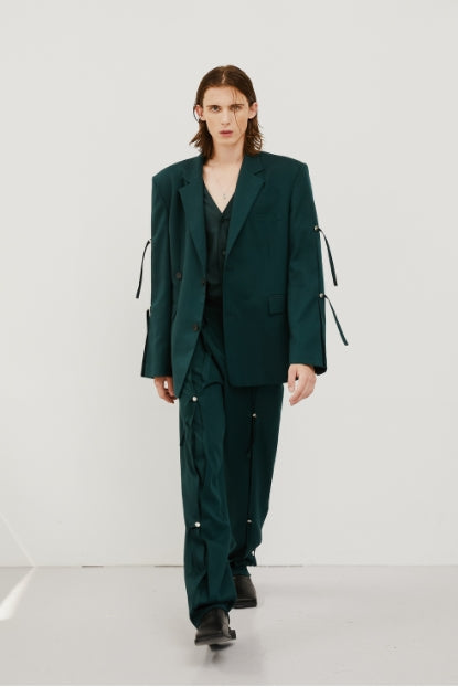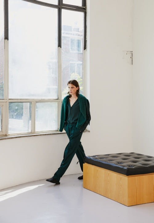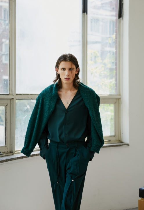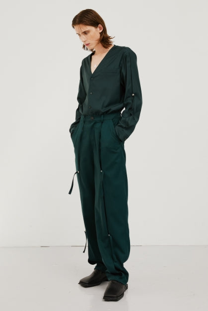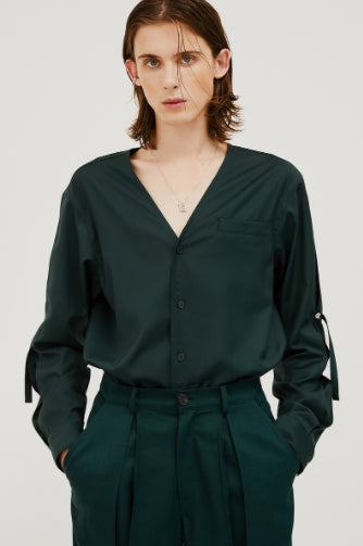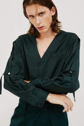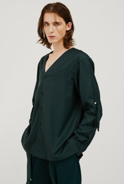 イーエスシースタジオ(ESC STUDIO) slit v-neck shirt(green)