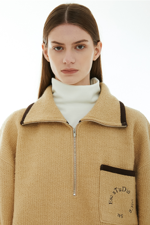 イーエスシースタジオ(ESC STUDIO) wool knit zip-up mtm (beige)