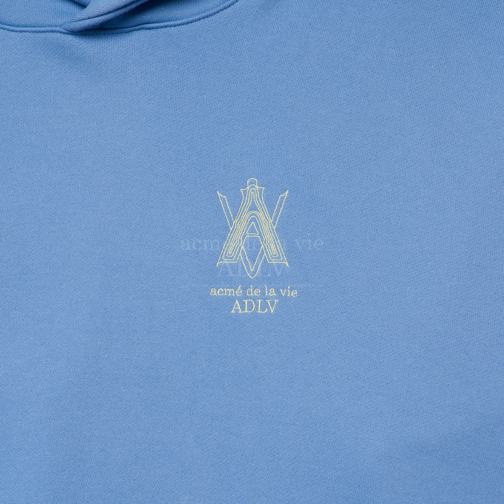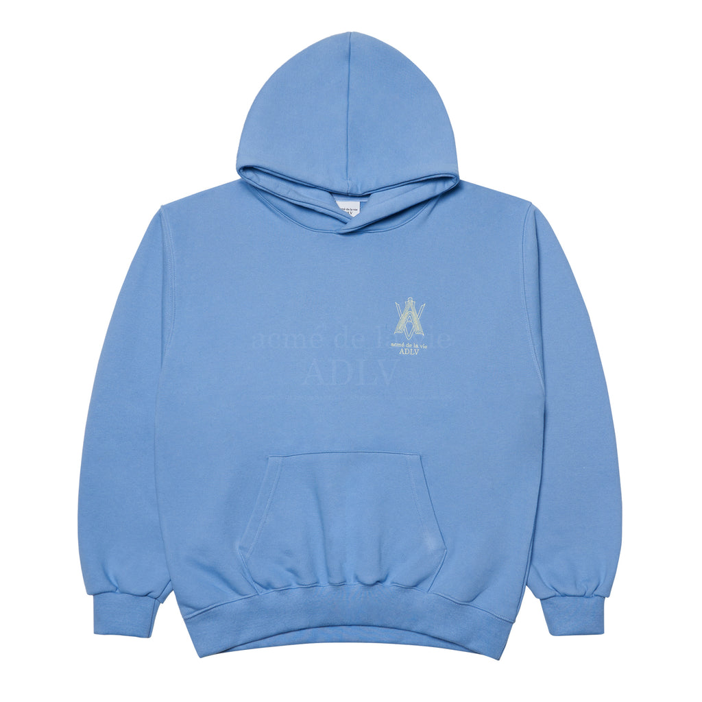 アクメドラビ(acme' de la vie) AV COLOR EMBOIDERY LOGO HOODIE LIGHT INDIGO BLUE