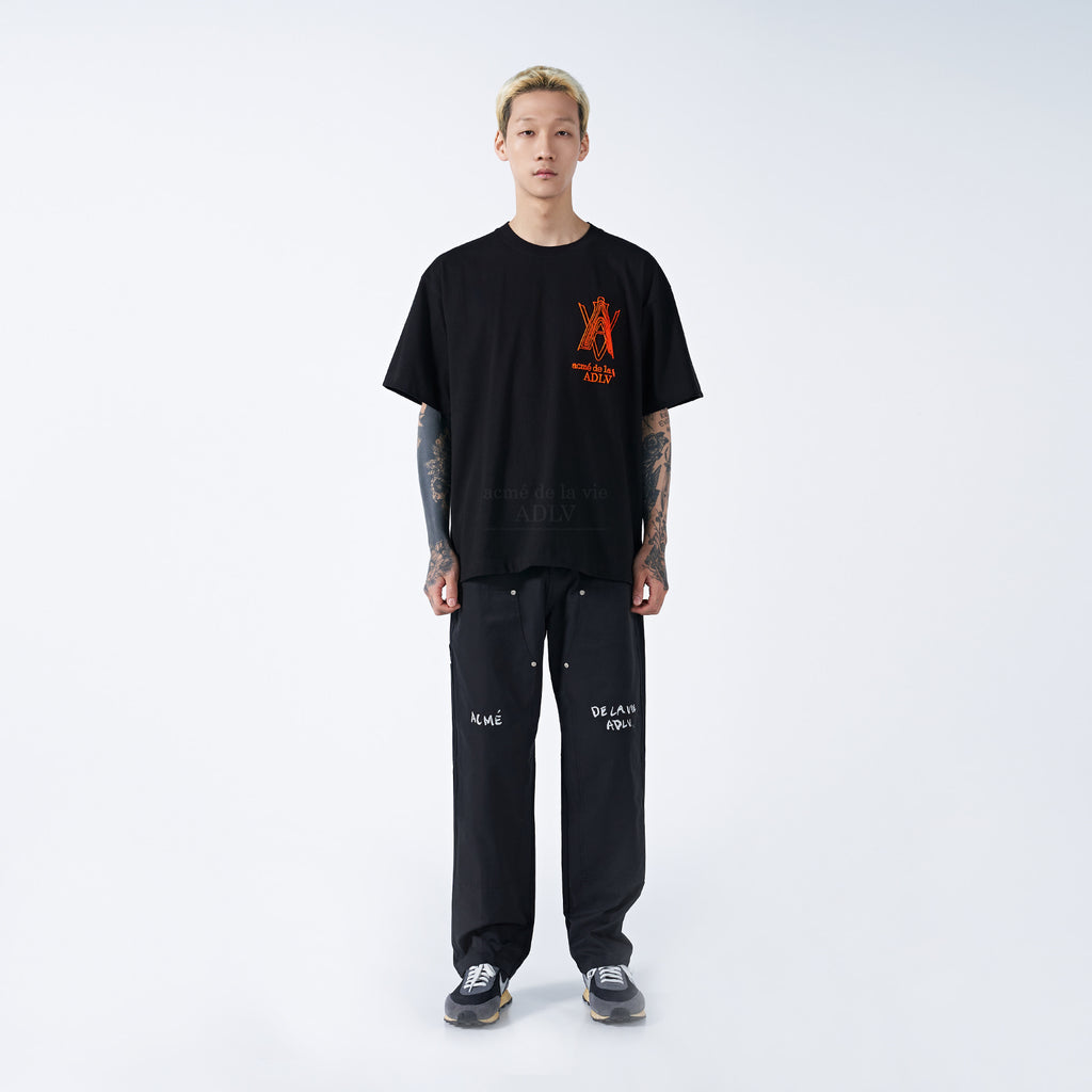アクメドラビ(acme' de la vie) AV LOGO TUFT EMBROIDERY SHORT SLEEVE T-SHIRT BLACK