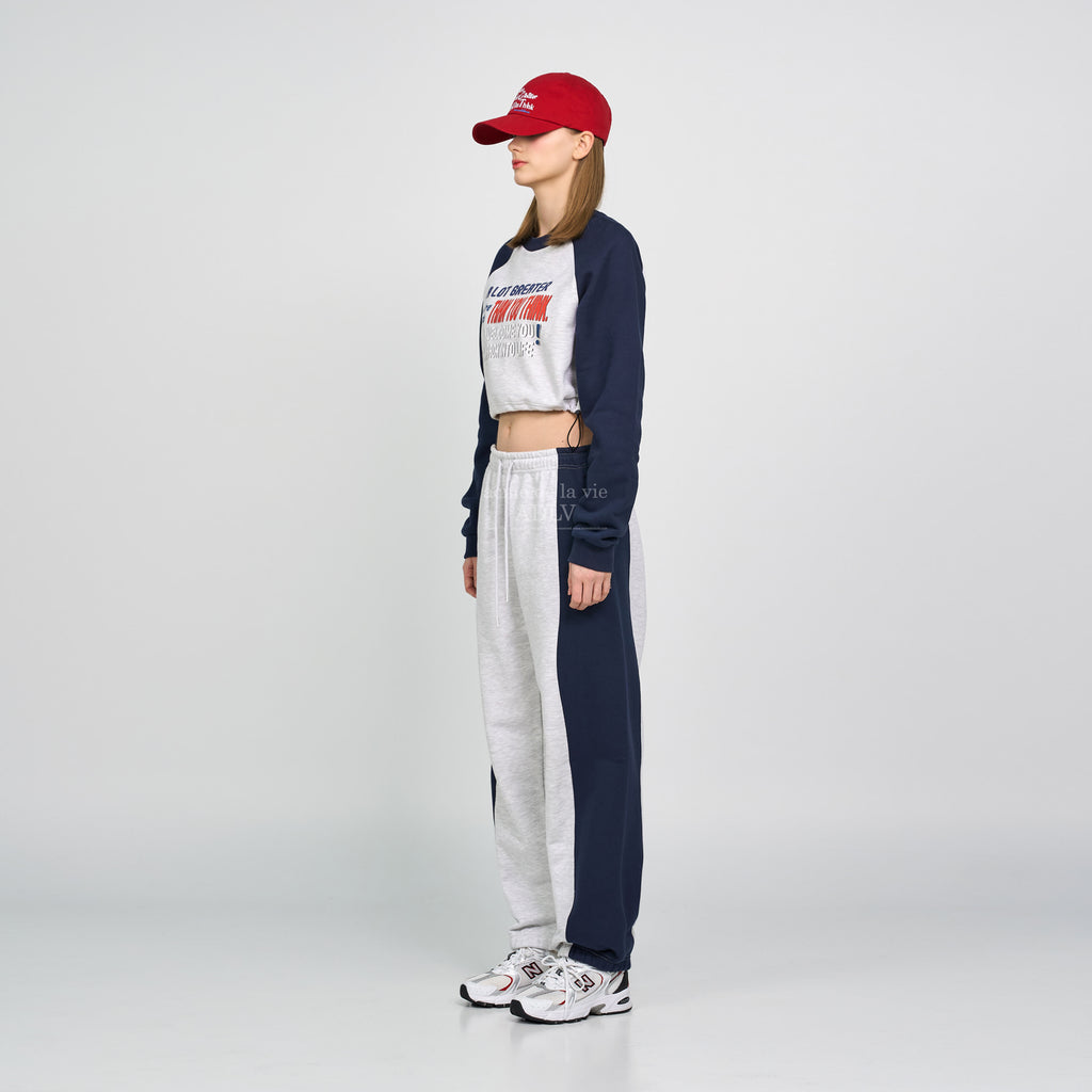 アクメドラビ(acme' de la vie) COLORS SCHEME SETUP CROP SWEATSHIRT NAVY