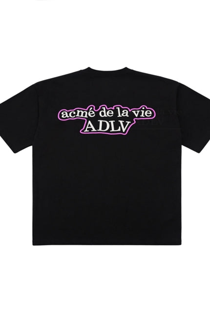アクメドラビ(acme' de la vie) DOUBLE EMBO BASIC LOGO SHORT SLEEVE T-SHIRT BLACK / PINK