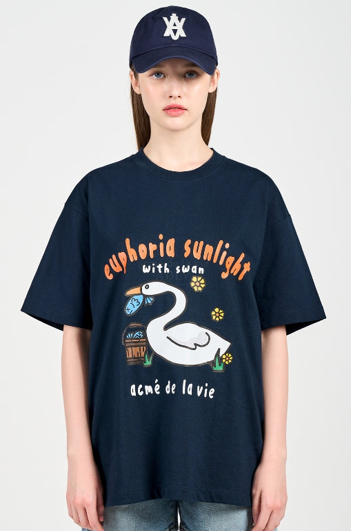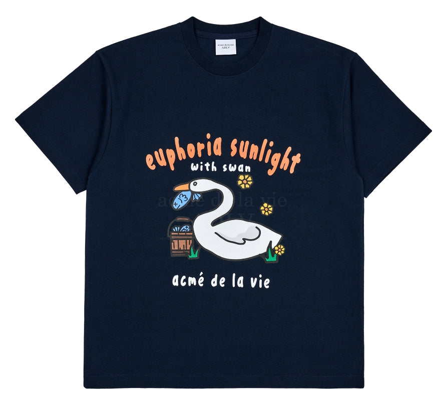 アクメドラビ(acme' de la vie) FISH SWAN SHORT SLEEVE T-SHIRT NAVY