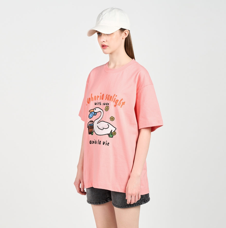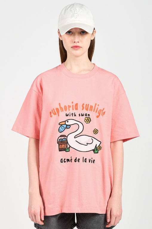 アクメドラビ(acme' de la vie) FISH SWAN SHORT SLEEVE T-SHIRT PINK