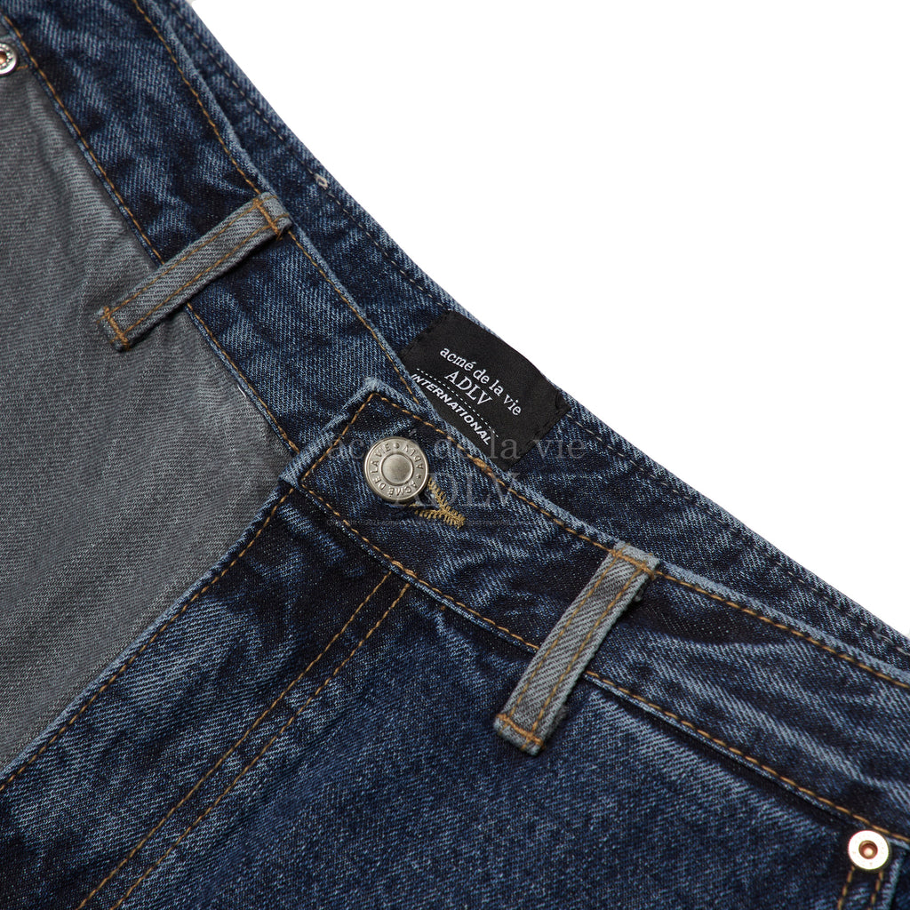 アクメドラビ(acme' de la vie) HALF AND HALF DENIM PANTS BLUE/BLACK