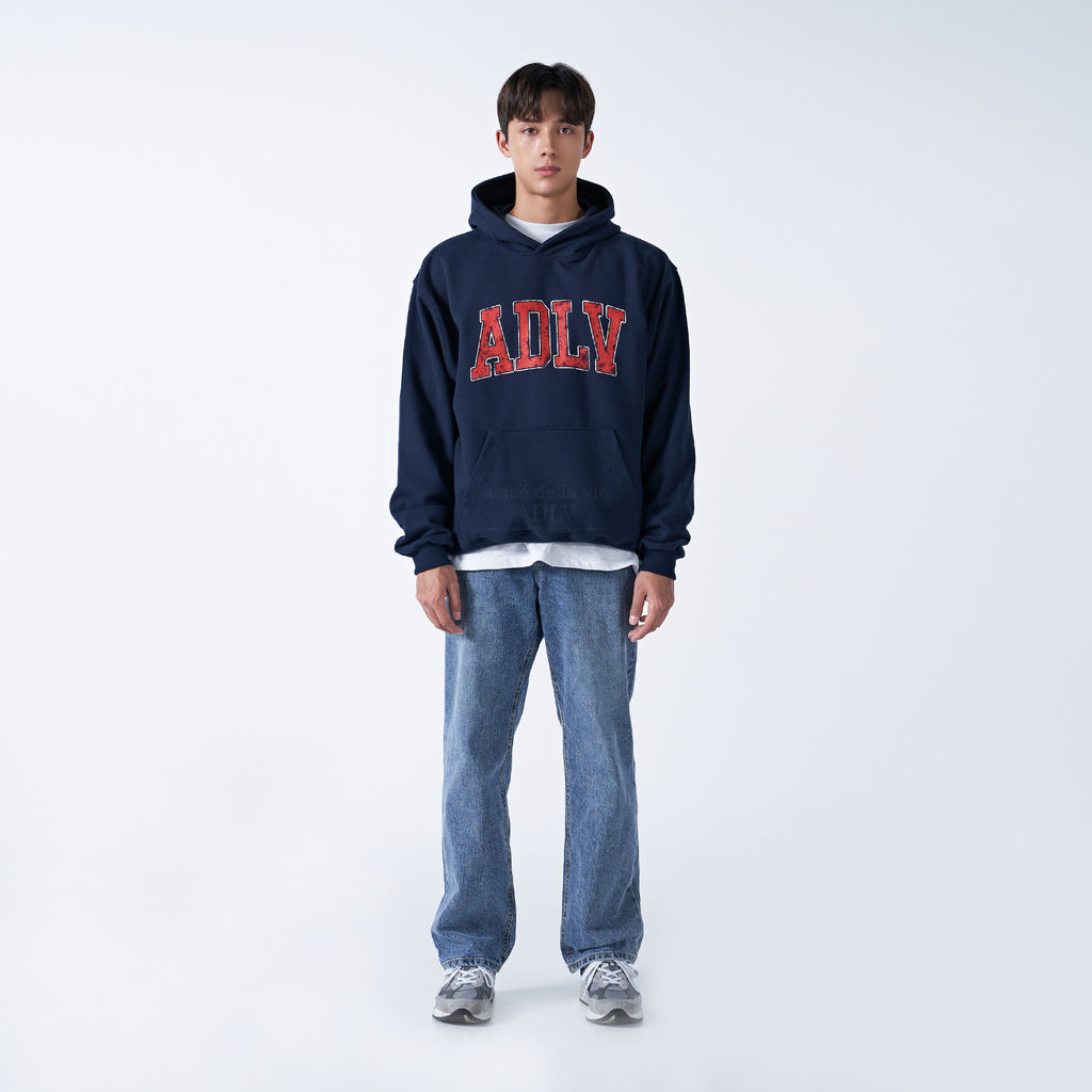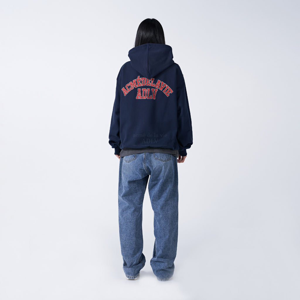 アクメドラビ(acme' de la vie) VINTAGE OLD SCHOOL LOGO HOODIE NAVY