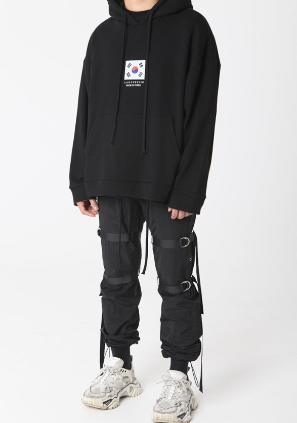 ランベルシオ(LANG VERSIO) 260 D-ring nylon metal string jogger pants BK