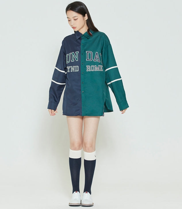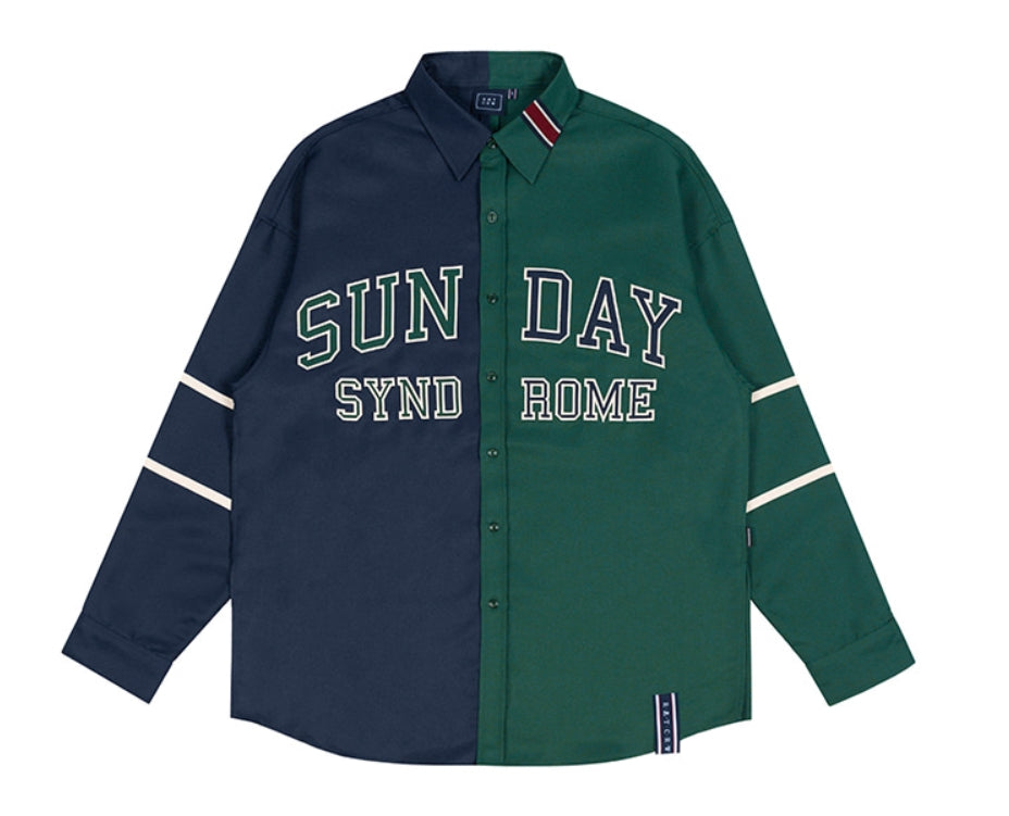 ロマンティッククラウン(ROMANTIC CROWN) SUNDAY SYNDROME COLOR BLOCK SHIRT_NAVY