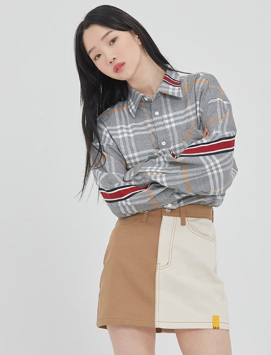 ロマンティッククラウン(ROMANTIC CROWN)BACK LINE CHECK SHIRT_GREY