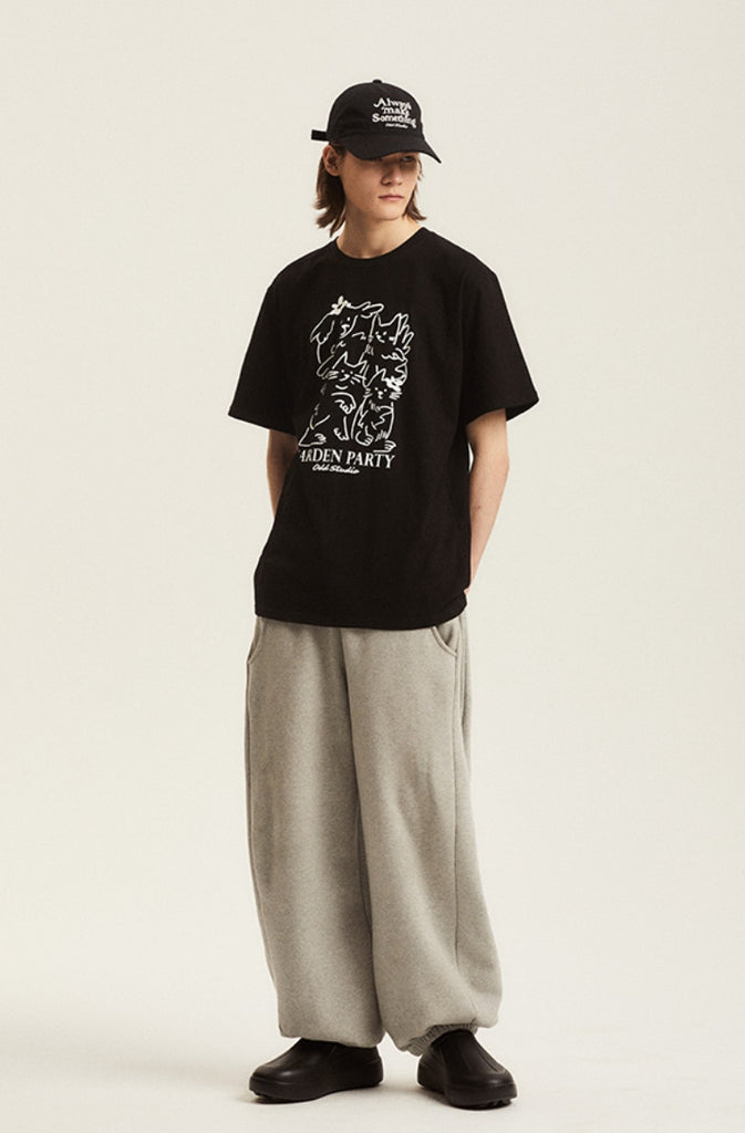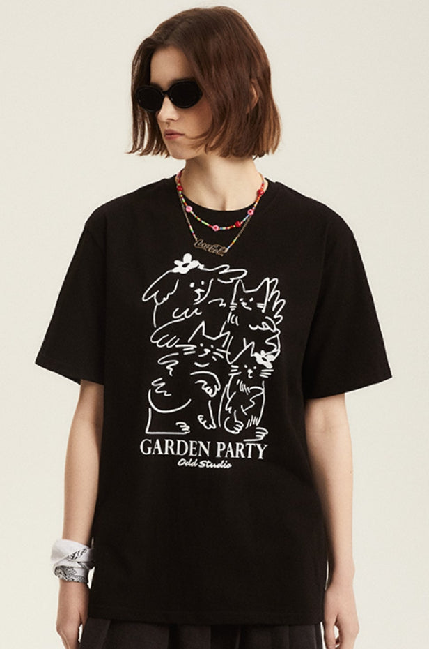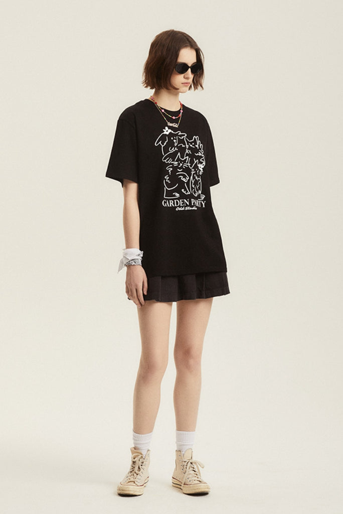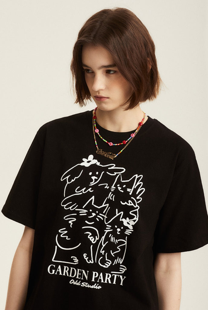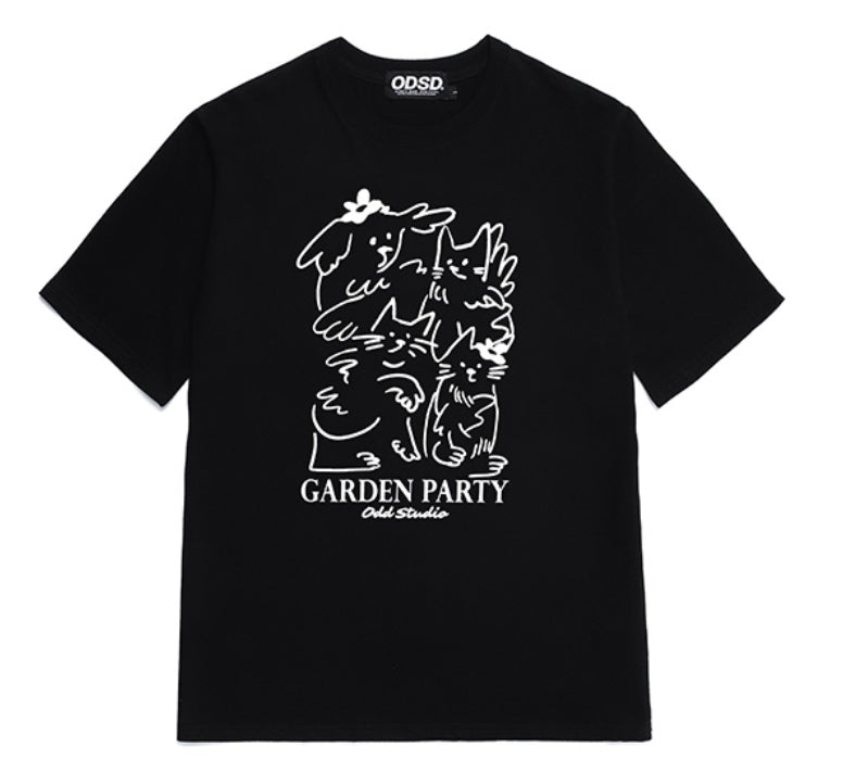 Odd Studio (オッドスタジオ) GARDEN PARTY DRAWING T-SHIRT - BLACK