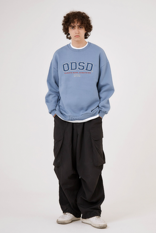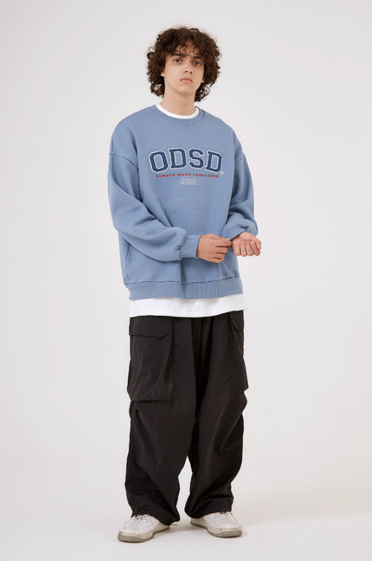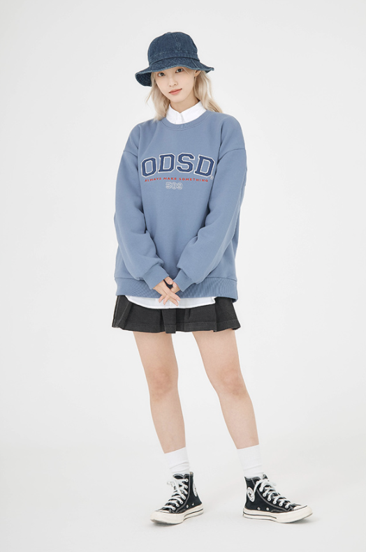 Odd Studio (オッドスタジオ) ODSD APPLIQUE LOGO SWEATSHIRT-DUST BLUE
