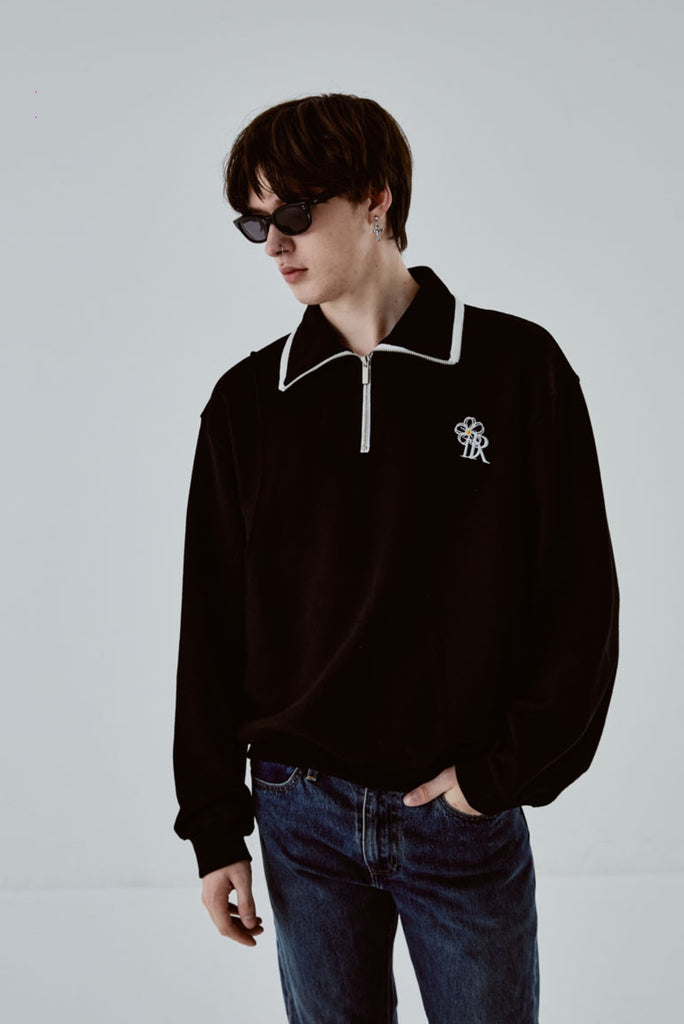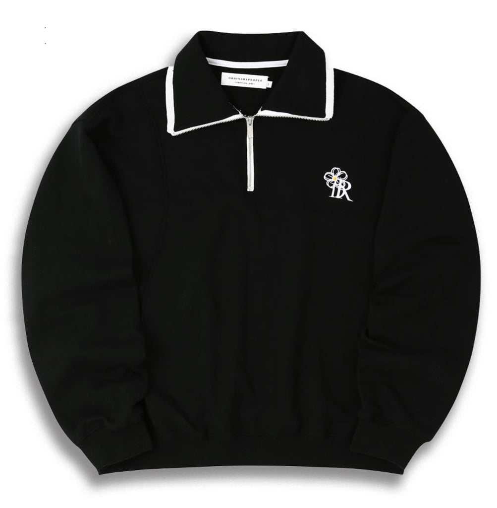 ORDINARY PEOPLE(オーディナリーピープル) HALF ZIP UP BLACK CREWNECK