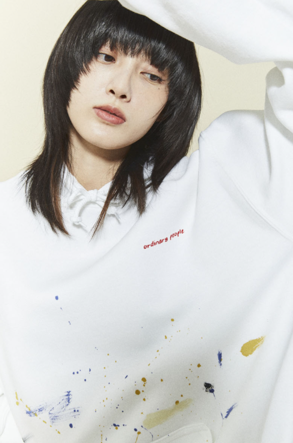 ORDINARY PEOPLE(オーディナリーピープル) HANDPAINTING SCRIBBLE LOGO WHITE HOODIE