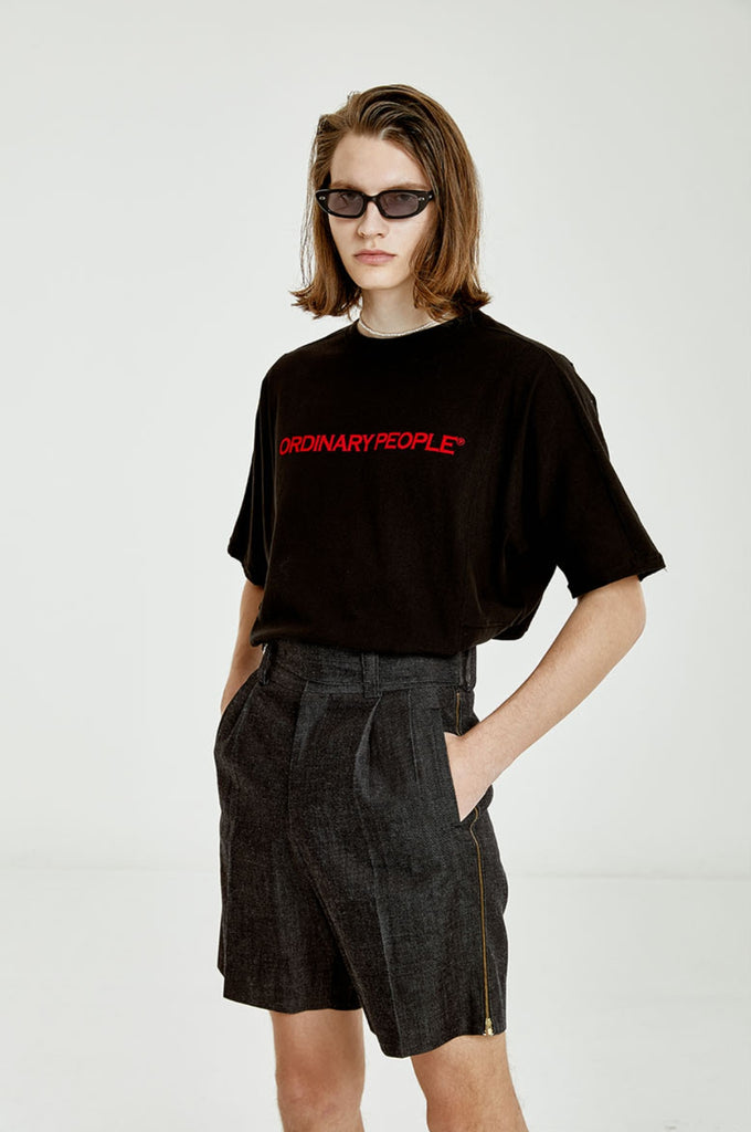 ORDINARY PEOPLE(オーディナリーピープル) ORDINARY CUTTING DETAIL BLACK T-SHIRTS