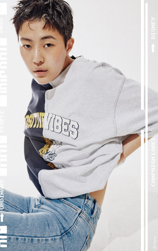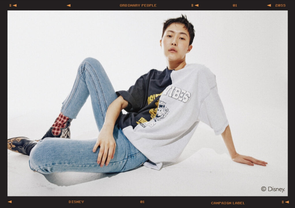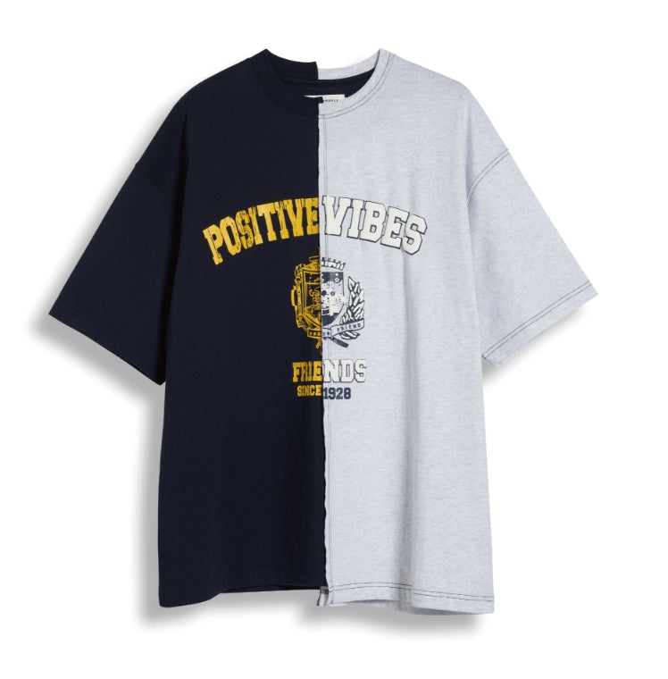 ORDINARY PEOPLE(オーディナリーピープル) [ORDINARYPEOPLE X DISNEY] POSITIVE VIBES NAVY&WHITE MELANGE T-SHIRTS