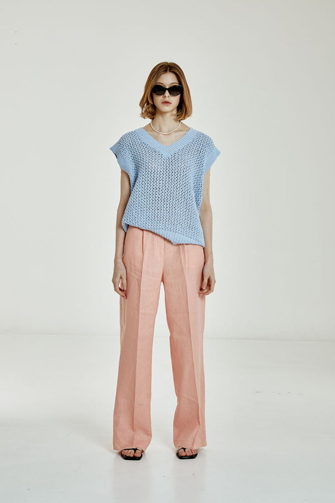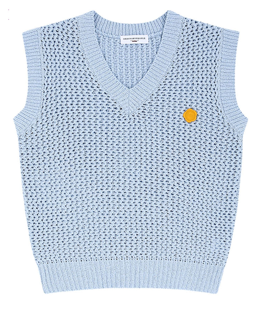 ORDINARY PEOPLE(オーディナリーピープル) SEALING CROCHET V NECK SKYBLUE KNIT VEST
