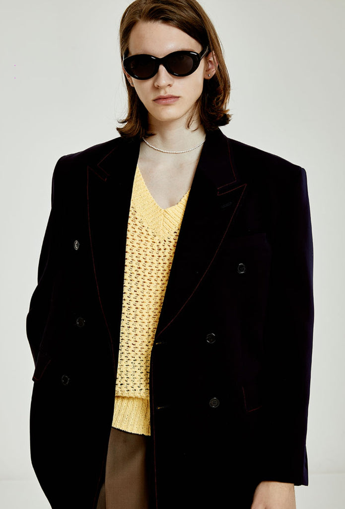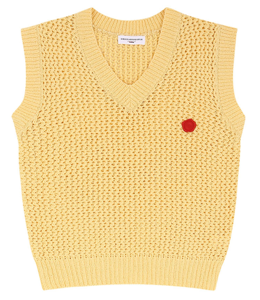 ORDINARY PEOPLE(オーディナリーピープル) SEALING CROCHET V NECK YELLOW KNIT VEST