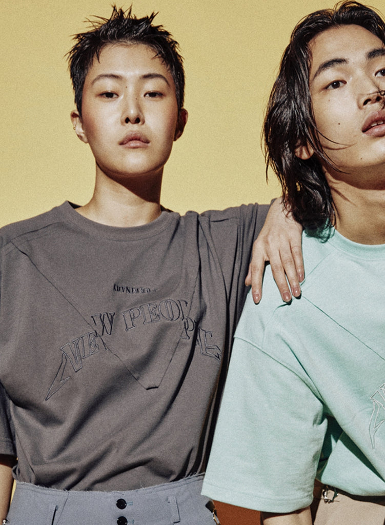 ORDINARY PEOPLE(オーディナリーピープル) V-CUTTING DETAIL STRING LAYERED CHARCOAL T-SHIRTS