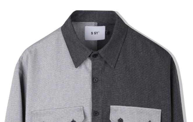 SSY(エスエスワイ) Half & half solid pocket shirt grey