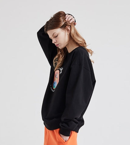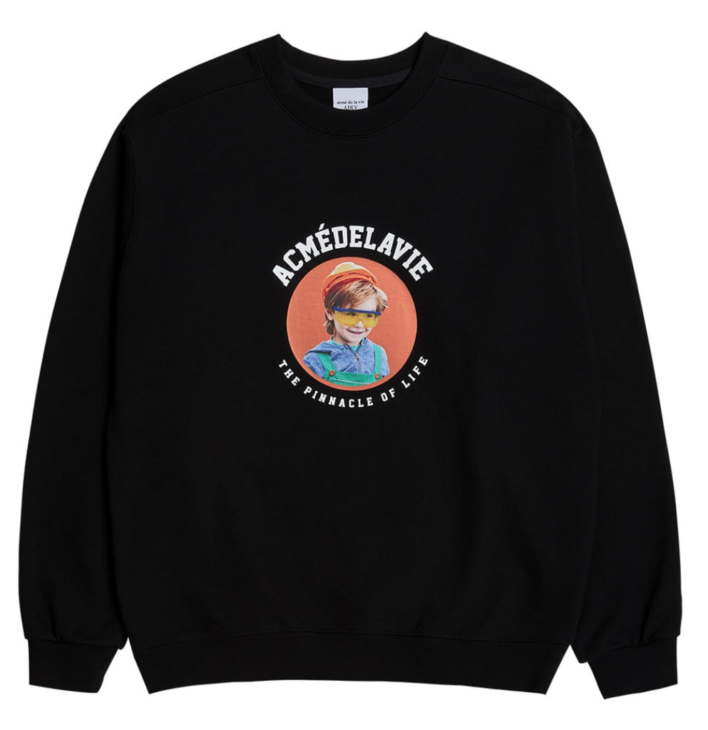アクメドラビ(acme' de la vie) ADLV BABY FACE SWEATSHIRT BLACK MINI YELLOW GLASSES