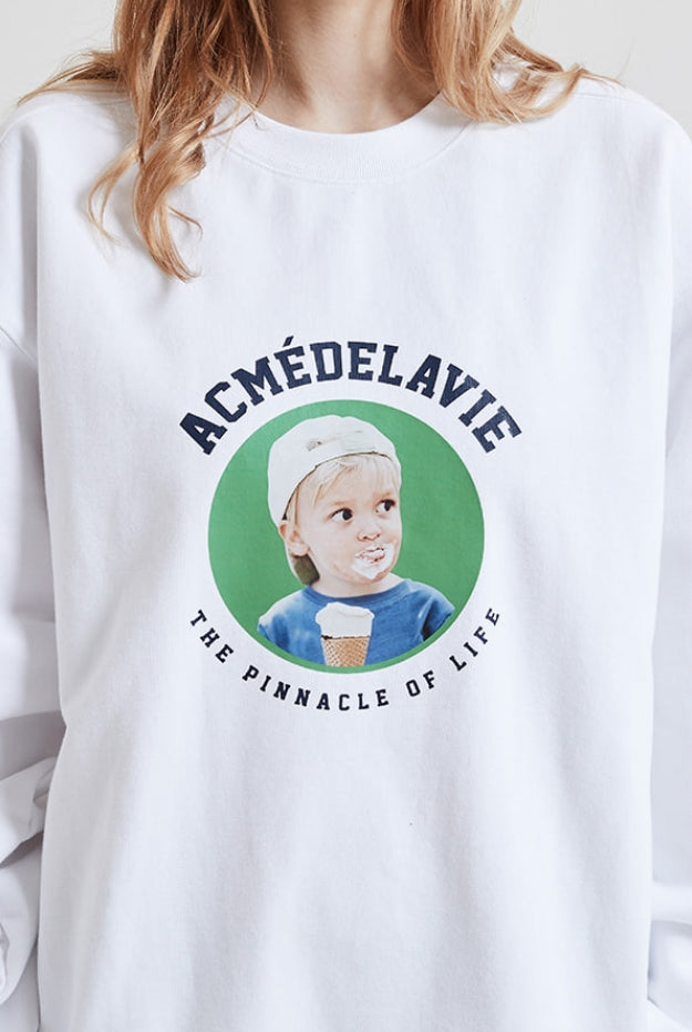 アクメドラビ(acme' de la vie) ADLV BABY FACE SWEATSHIRT WHITE MINI WHITE CAP