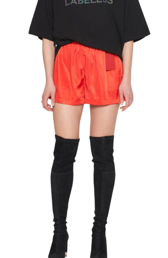 レイブレス(LABELESS) RED SIGNATURE LEATHER LABEL NYLON SHORTS