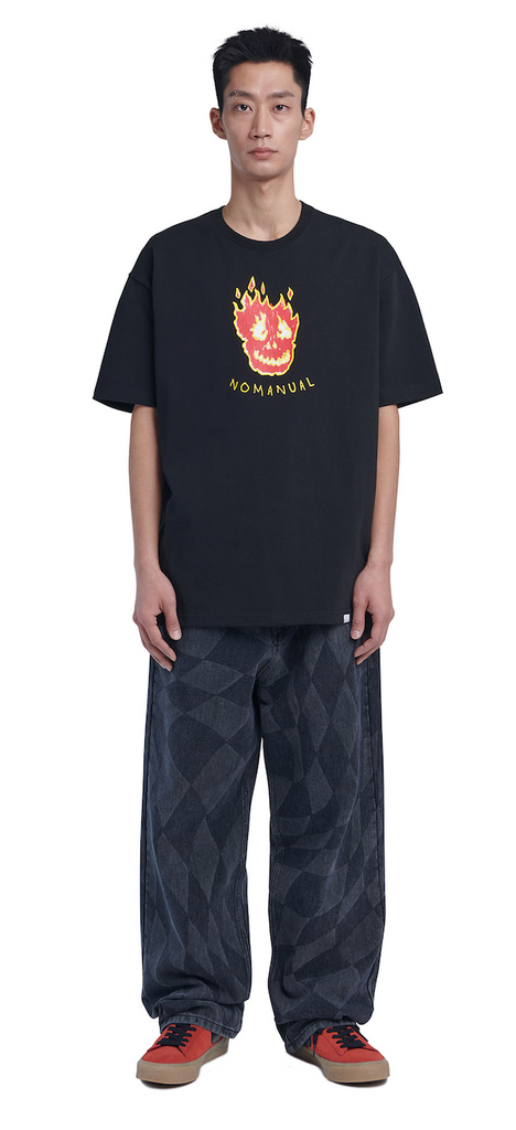 NOMANUAL(ノーマニュアル) D.T CHECKERBOARD DENIM PANTS - WASHED BLACK