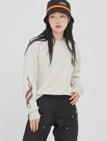 ロマンティッククラウン(ROMANTIC CROWN) CEREMONY TAPE SWEAT SHIRT_MELANGE IVORY
