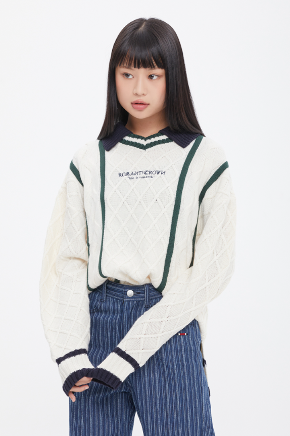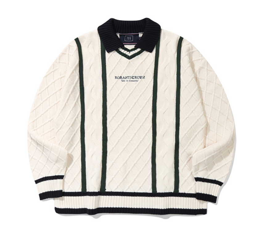 ロマンティッククラウン(ROMANTIC CROWN) COLLAR WAFFLE KNIT_OATMEAL