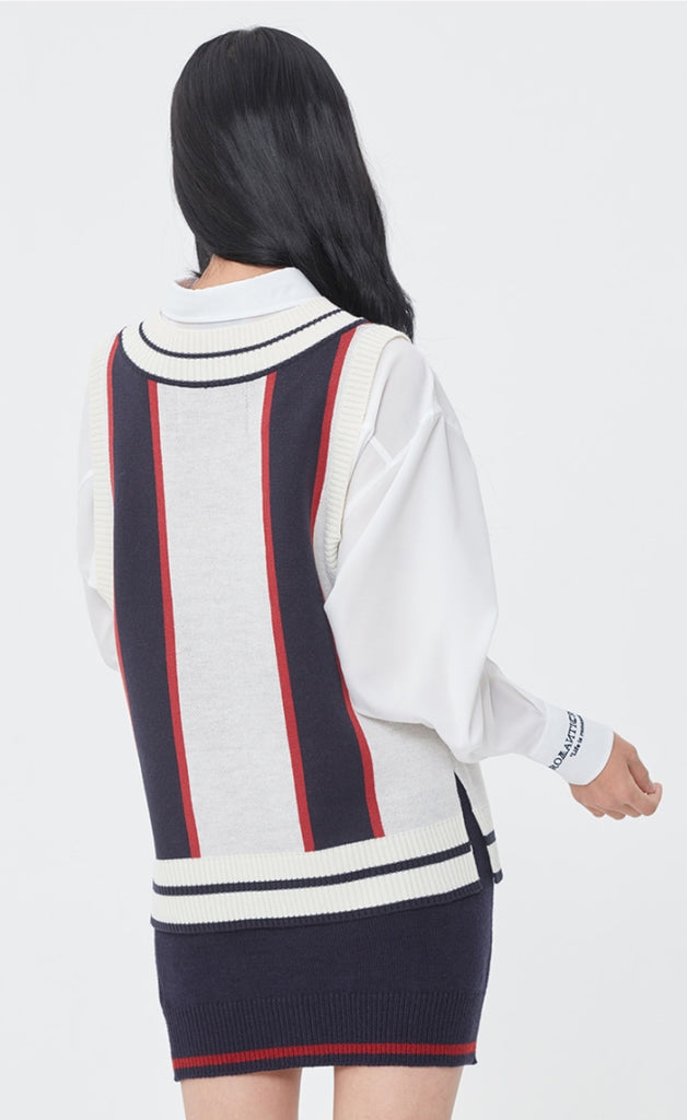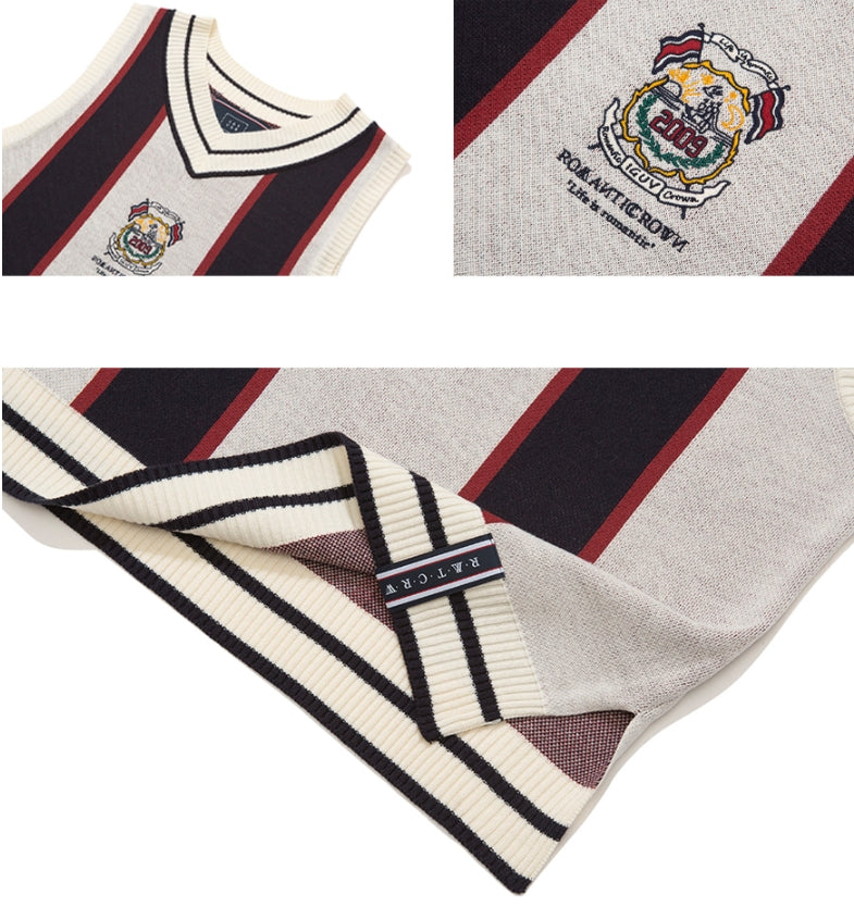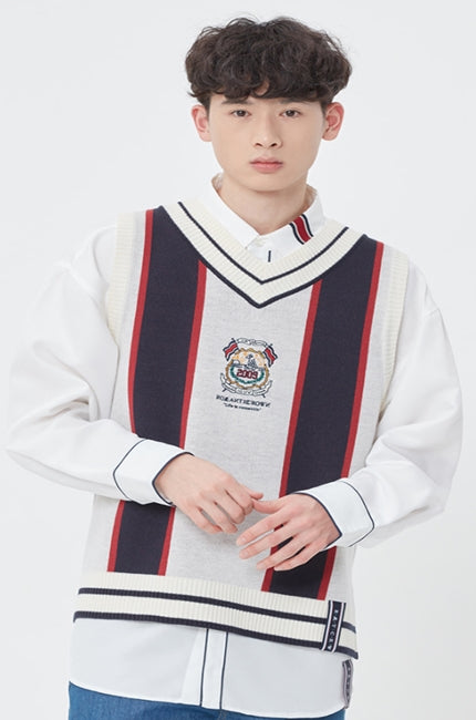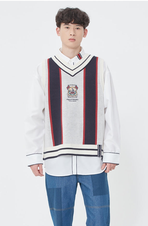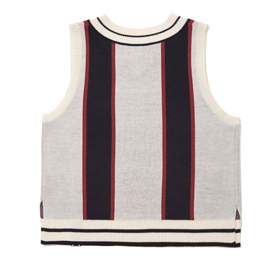 ロマンティッククラウン(ROMANTIC CROWN) COLOR LINE KNIT VEST_OATMEAL