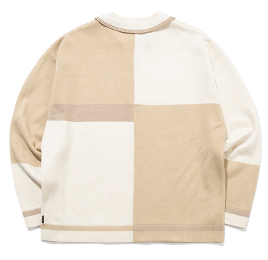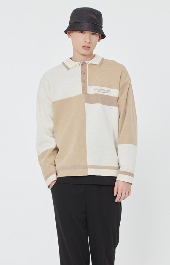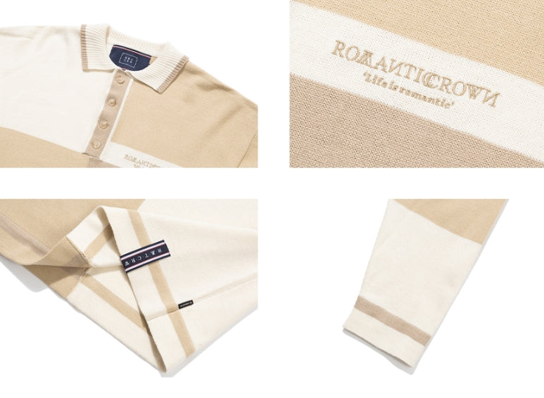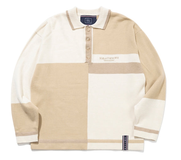 ロマンティッククラウン(ROMANTIC CROWN) CONTRAST KNIT POLO_BEIGE