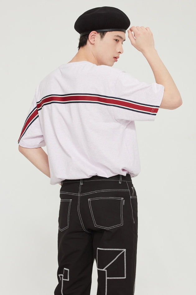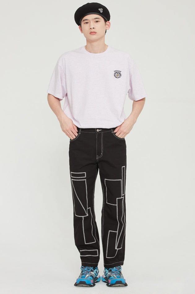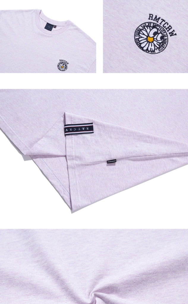 ロマンティッククラウン(ROMANTIC CROWN) FLOWER FACE BACK LINE TEE_MELANGE LIGHT PURPLE