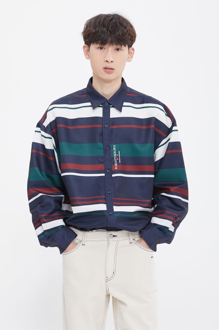 ロマンティッククラウン(ROMANTIC CROWN) MULTI STRIPE SHIRT_NAVY