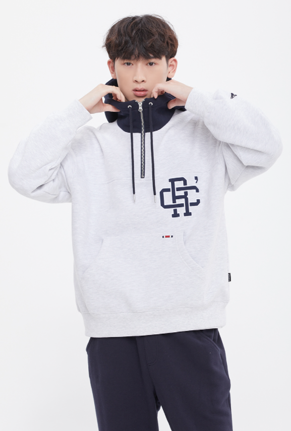 ロマンティッククラウン(ROMANTIC CROWN) RC CLUB HALF ZIP UP HOOD_LIGHT GRAY