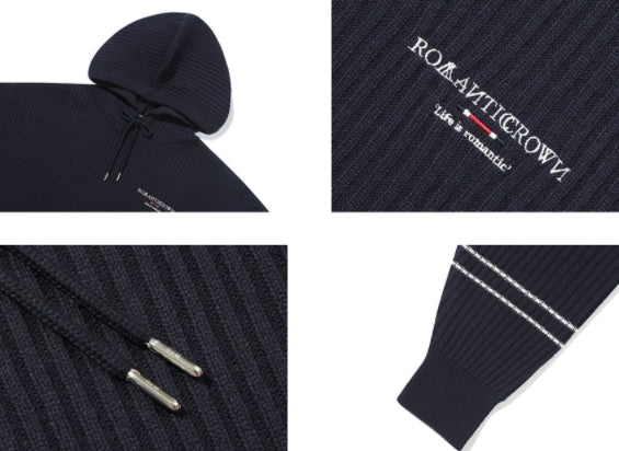 ロマンティッククラウン(ROMANTIC CROWN) RIB KNIT HOOD_NAVY